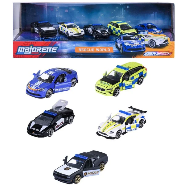 Coffret de 5 véhicules en métal à roues libres. Reproductions originales des véhicules d’intervention de la police de Dubai à l’échelle 1/64ème :