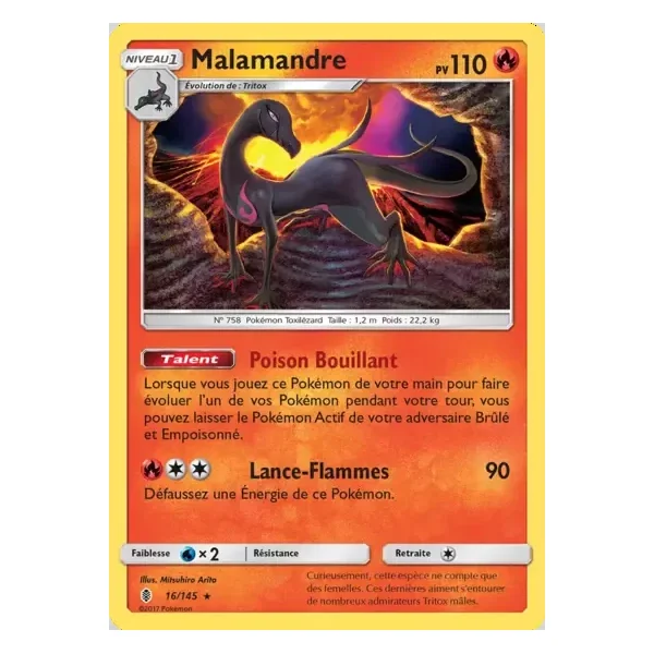 Découvrez Malamandre (gri016), une carte Pokémon de l’extension Gardiens Ascendants, provenant du bloc Soleil & Lune. Idéale pour compléter votre collection, cette carte Rare plaira autant aux collectionneurs qu’aux joueurs.