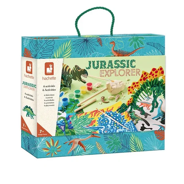 Avec cette mallette d’explorateur, les enfants dès 7 ans profitent de 5 activités sur le thème de leurs créatures préférées : les dinos ! Au programme : 1 kit d’excavation avec une griffe et une dent à découvrir (votre mini paléontologue saura t’il reconnaître à quel dinosaure elles appartiennent ?), 1 figurine de stégosaure en bois à assembler et à peindre (idéale pour décorer la chambre), 2 tableaux de peinture par numéros à peindre pour voir apparaitre des spécimens fantastiques, 1 carte à gratter en forme de T-Rex. Afin de réaliser tous les travaux de peinture, 6 godets de peinture (5 ml) et 1 pinceau sont fournis. Un livret avec des instructions est également inclus pour guider les enfants dans les diverses activités.