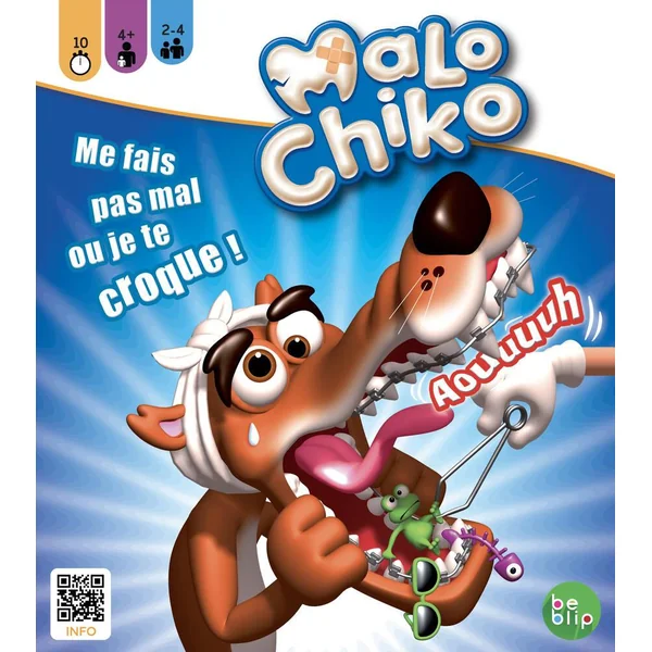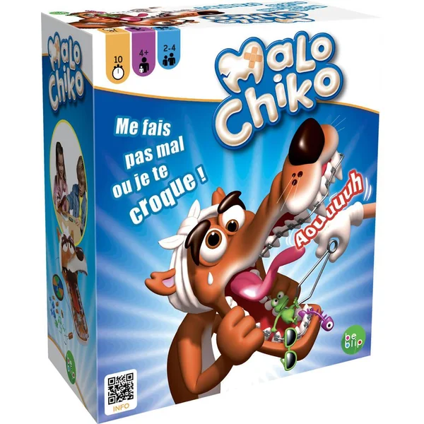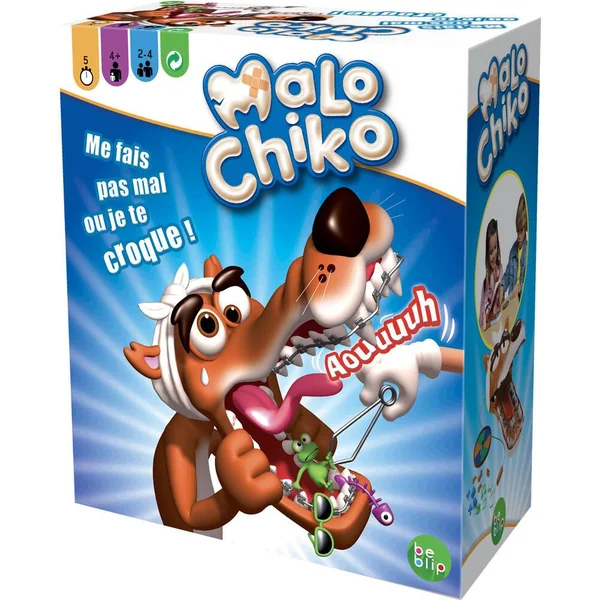 Ce loup a mangé vraiment n’importe quoi, et des objets sont coincés dans sa gueule. A l’aide de la pince, retire délicatement l’objet de la couleur indiquée par la flèche du spinner ! Mais attention à ne pas te faire mordre, et si tu touches son appareil en métal, il risque de relâcher sa terrible mâchoire ! Contenu : 1 loup motorisé + 10 objets en plastique + 1 spinner + 1 pince reliée au loup. Nombre de joueurs 2 – 4. Durée de la partie 10 minutes.