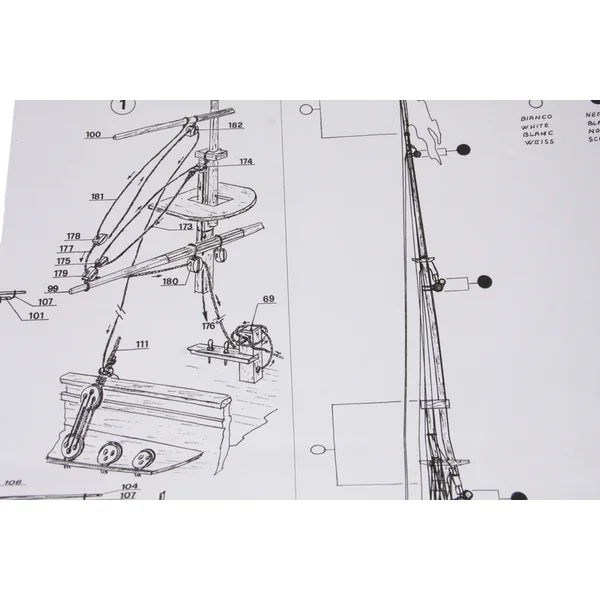 Le set contient un ensemble complet de documentation de dessin avec le processus de construction, les pièces sont soigneusement marquées sur le dessin et il y a aussi une liste des différentes pièces du modèle.