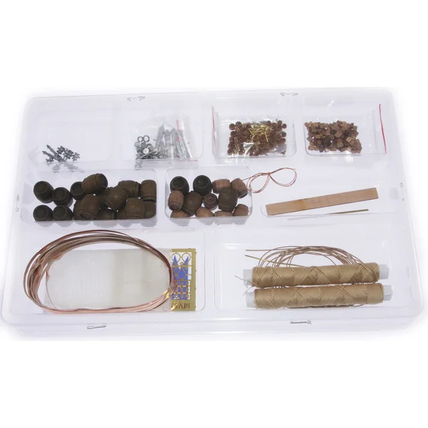 En ouvrant le couvercle de la boîte, vous trouverez des pièces en bois du modèle en contreplaqué, un ensemble de baguettes, de petites pièces enfermées dans un blister transparent en plastique, un ensemble de dessins et un manuel.