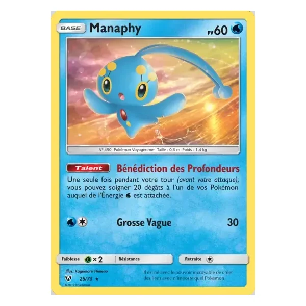 Découvrez Manaphy (slg025), une carte Pokémon de l’extension Légendes Brillantes, provenant du bloc Soleil & Lune. Idéale pour compléter votre collection, cette carte Holo Rare plaira autant aux collectionneurs qu’aux joueurs.