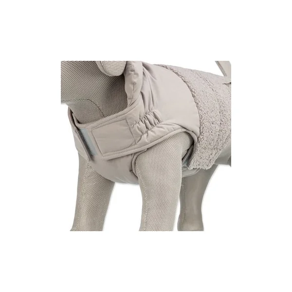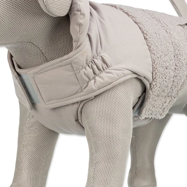 La veste a une surface déperlant, donc elle gère bien la pluie légère et la neige. La fermeture à velcro au niveau de la poitrine et du ventre facilite l’enfilage et s’adapte parfaitement à la plupart des chiens. Les poches décoratives ajoutent du style et une touche d’originalité à la veste.