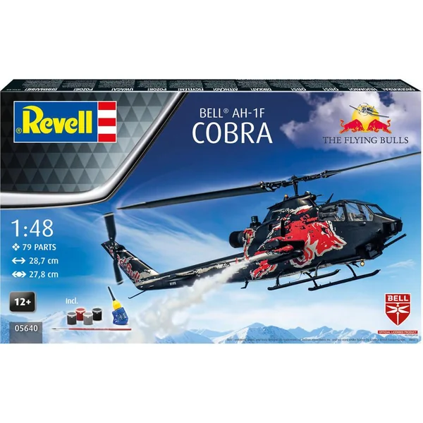 Maquette plastique à assembler, à coller et à peindre de l’AH-1F Cobra, l’hélicoptère de combat standard actuel de l’armée américaine. Échelle 1:48. 79 pièces. Longueur de 291 mm. A partir de 12 ans. Le coffret Cadeau contient les peintures Aqua Color de base, une colle et un pinceau.