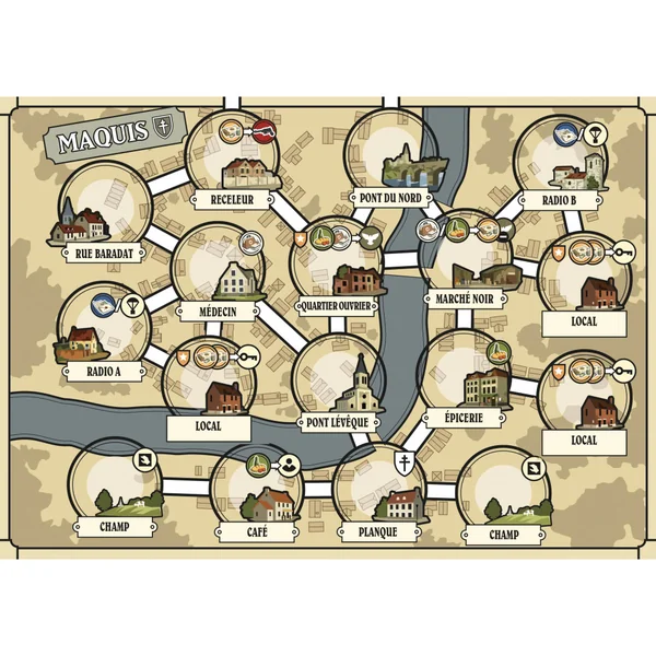 Maquis est un jeu de placement d’ouvriers en solitaire d’une durée d’environ 30 minutes. Vous devrez positionner vos membres de la Résistance sur des lieux stratégiques pour accomplir des missions variées telles que saboter un train, publier un journal clandestin ou encore libérer le chef de la résistance. Les missions sont plus ou moins dures, les dernières extrêmement difficiles à réaliser.