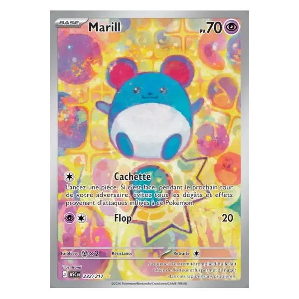 Découvrez Marill (asc232), une carte Pokémon de l’extension Héros Transcendants, provenant du bloc Méga-Évolution. Idéale pour compléter votre collection, cette carte Illustration Rare plaira autant aux collectionneurs qu’aux joueurs.