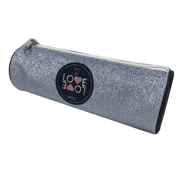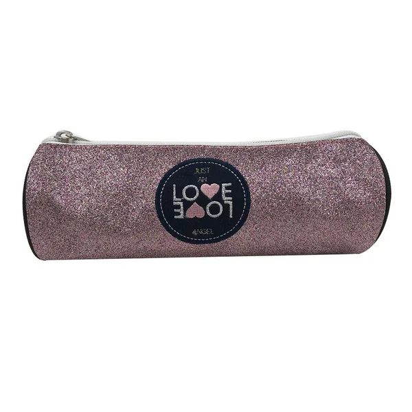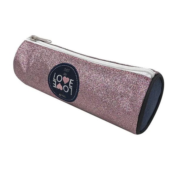 Trousse ronde love love , matiere polyester, dimension cm : 21,5×7,3×7,3. 1 compartiment.