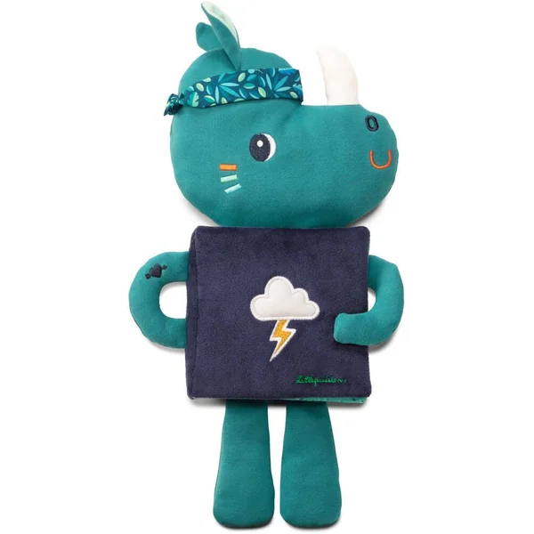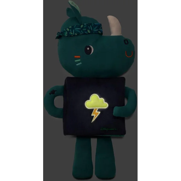 Ce livre doudou irrésistible ne manquera pas de tranquilliser bébé. Le livre offre un éventail d’activités relaxantes. La douceur du tissu et le museau mignon invitent aux câlins. Lorsque la lumière s’éteint, l’illustration sur la couverture s’éclaire et devient ainsi une veilleuse jusqu’à ce que le bébé s’endorme.