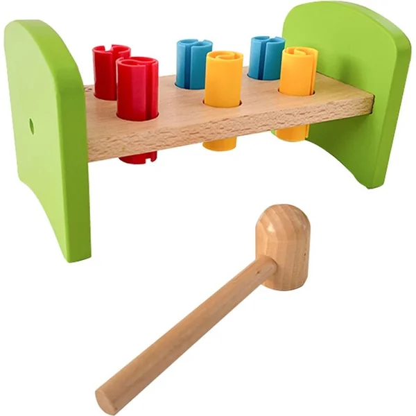 Le marteau en bois avec des couleurs vives est un excellent jouet pour les petits bricoleurs qui veulent ressembler à leur papa.