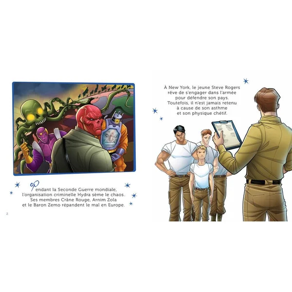 Accompagnez chaque soir votre enfant au pays des rêves avec la collection « Mon histoire du soir » ! Dans cet ouvrage de 16 pages richement illustré, au texte court, facile et rapide à lire, découvrez une histoire du super-héros Captain America. Un texte adapté aux plus petits pour un temps de lecture de 5 minutes.