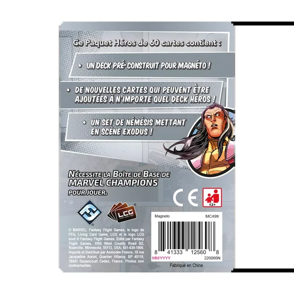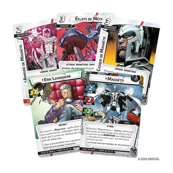 Dans l’Extension Magneto pour Marvel Champions, vous trouverez Magneto, ses quinze cartes signature, ainsi qu’un assortiment complet de cartes Commandement.