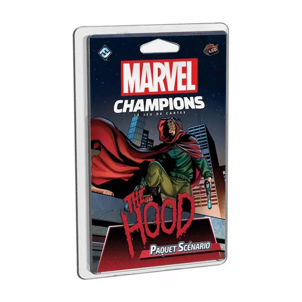 Marvel Champions : The Hood – Extension : Êtes-vous prêt à abattre un dangereux empire criminel ? Depuis qu’il a assisté, enfant, à un combat entre Electro et Daredevil, la vie de super-vilain a séduit Parker Robbins. Plus tard, alors qu’il volait de l’argent pour payer les soins médicaux de sa mère, une rencontre fortuite avec un démon a laissé Robbins avec une paire de bottes qui lui permettent de marcher dans le vide et une cape rouge tout aussi mystique. Aujourd’hui, sous le nom de Hood, Robbins et son empire criminel naissant deviennent rapidement une menace redoutable pour les habitants de New York.