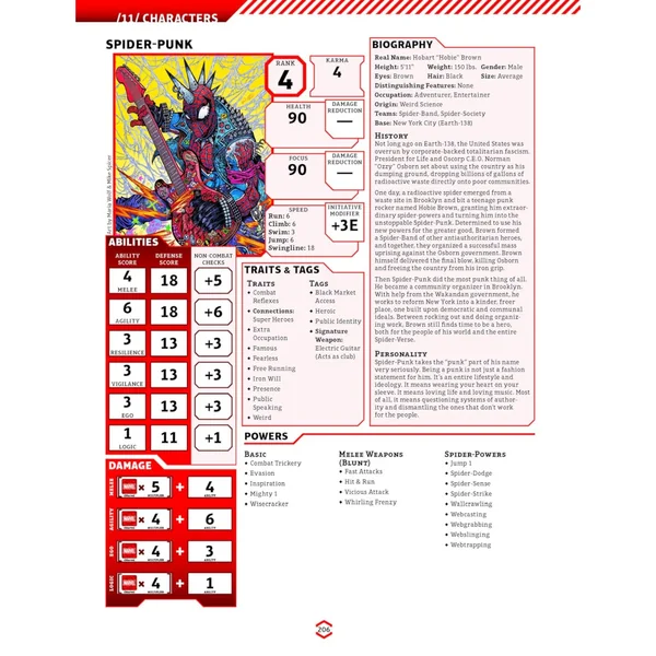 Découvrez de nouvelles façons de créer des personnages secondaires captivants, des règles pour gérer les symbiotes et les clones, et des conseils pour affronter vos plus grands ennemis (comme les Sinister Six !). Également au programme : de nouveaux équipements et des dizaines de nouveaux personnages, dont Carnage, Chasm, Madame Web, Spider-Ham, Spider-Man Noir, et bien d’autres !