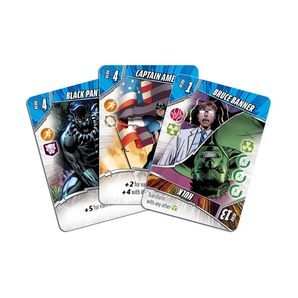 Les joueurs reçoivent une main de sept cartes représentant des personnages, des objets ou des lieux de l’univers Marvel. À chaque tour, vous piocherez dans la pioche des héros, la pioche des méchants ou les cartes défaussées par vos adversaires, avant de défausser vous-même une carte. Les cartes ont une valeur de base, et un bonus qui change en fonction des autres cartes de votre main. Celui qui a la main qui vaut le plus de points à la fin de la partie est le gagnant !