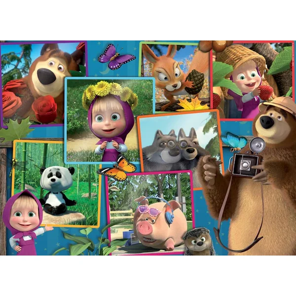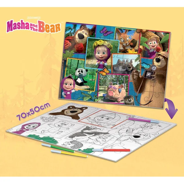 Amusez-vous à reconstituer les plus belles scènes de Masha et l’ours. Après avoir terminé le puzzle, le divertissement continue ! Au dos de la planche, vous trouverez une scène en noir et blanc à colorier !