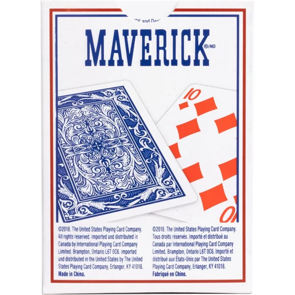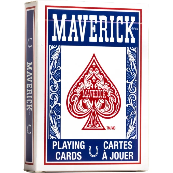 Jeu de 52 cartes traditionnel, dos bleu. Revêtu de plastique pour une sensation de douceur et une durabilité accrue.