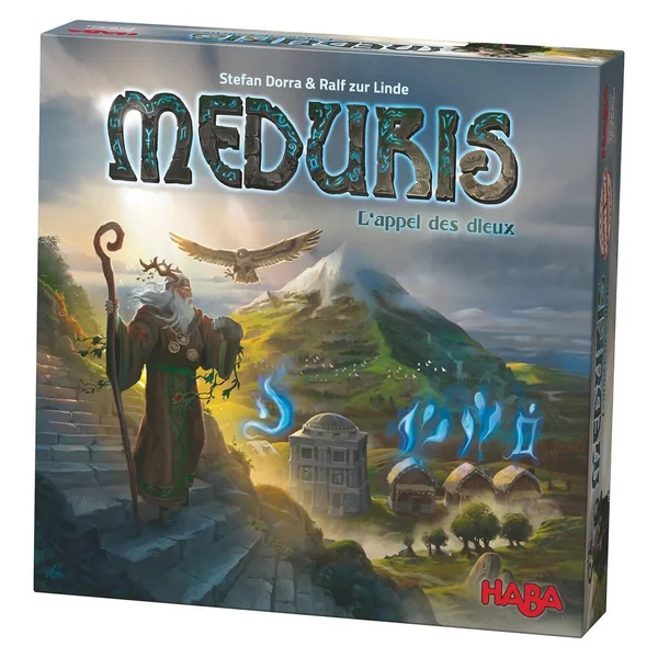 Répondant à l’appel des dieux, les joueurs se mettent en route pour peupler le pied du mont Méduris. Pour s’attirer la bienveillance des dieux, les joueurs devront construire des huttes, faire des offrandes au druide, collecter des précieuses pierres runiques et édifier des temples monumentaux. Un défi palpitant. Nombre de joueurs 2-4. Durée de la partie 75 mn.