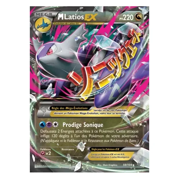 Découvrez Méga-Latios (ros059), une carte Pokémon de l’extension Ciel Rugissant, provenant du bloc XY. Idéale pour compléter votre collection, cette carte Ultra Rare plaira autant aux collectionneurs qu’aux joueurs.