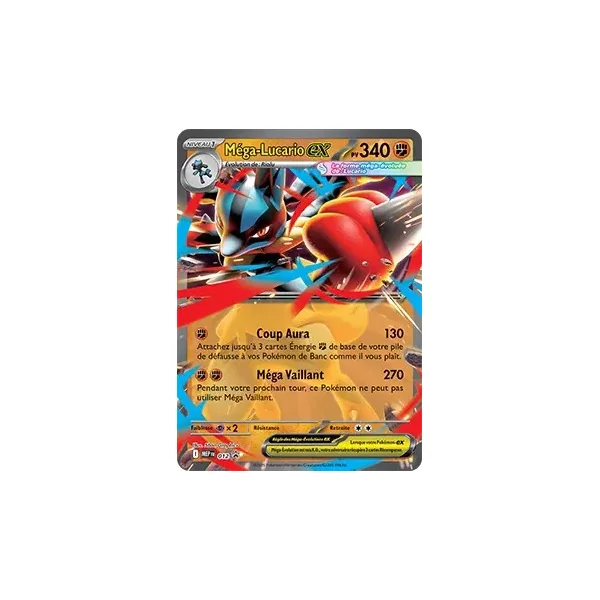 Découvrez Mega Lucario (mep012), une carte Pokémon de l’extension Promos Méga-Évolution, provenant du bloc Méga-Évolution. Idéale pour compléter votre collection, cette carte Promo plaira autant aux collectionneurs qu’aux joueurs.