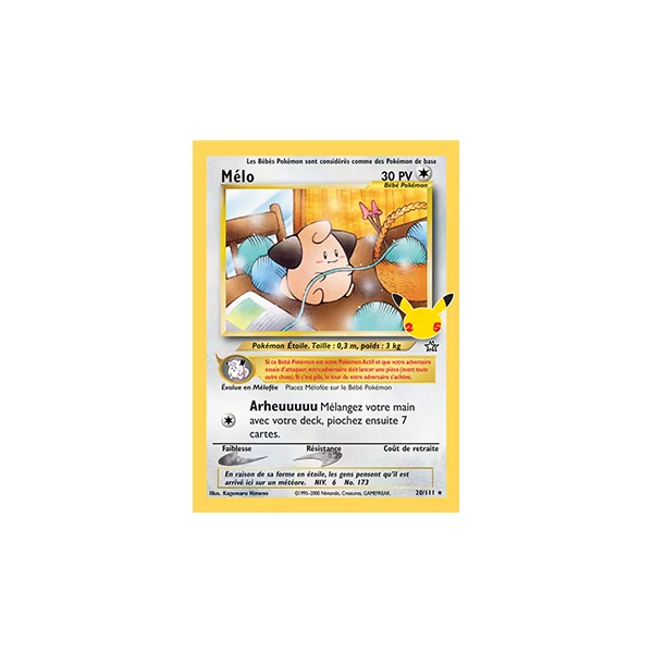 Découvrez Mélo (celNG 20), une carte Pokémon de l’extension Célébrations, provenant du bloc Épée & Bouclier. Idéale pour compléter votre collection, cette carte Rare plaira autant aux collectionneurs qu’aux joueurs.
