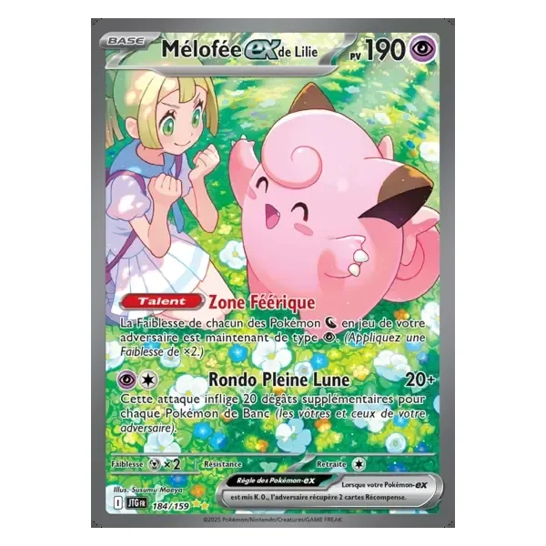 Découvrez Mélofée ex de Lilie (jtg184), une carte Pokémon de l’extension Aventures Ensembles, provenant du bloc Écarlate & Violet. Idéale pour compléter votre collection, cette carte Alternative plaira autant aux collectionneurs qu’aux joueurs.