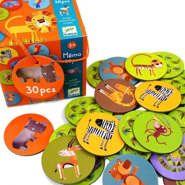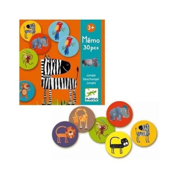 Le mémo – Jungle de Djeco est un jeu d’association d’images et de mémoire sur le thème de la jungle pour les enfants à partir de 3 ans.