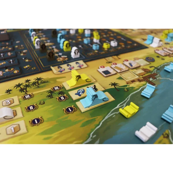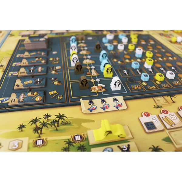 Au cours de trois époques, les joueurs choisissent à chaque tour, grâce à une nouvelle sélection d’actions combinant le placement d’ouvriers et le tirage de tuiles, le domaine de la vie et de la culture égyptiennes qu’ils souhaitent développer.