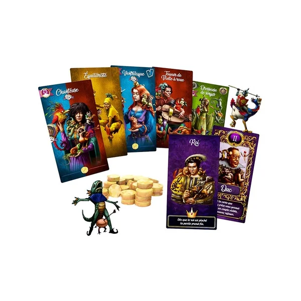Oyez oyez ! La grande fête médiévale va commencer !Le Roi a annoncé sa visite en ville, une opportunité à ne pas manquer pour s’attirer ses bonnes grâces !Chaque haut dignitaire de la région rivalise d’efforts pour organiser le plus beau spectacle…Les ménestrels les plus talentueux du royaume sont invités. Chanteurs, musiciens, conteurs, acteurs, jongleurs ou acrobates, à vous de réunir le plateau le plus prestigieux car le Roi ne rendra honneur qu’à la plus belle des fêtes…Un jeu de collections, rapide et simple !
