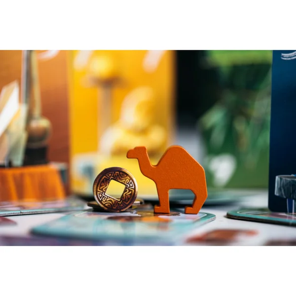 Au milieu de tout ce chaos organisé, de riches et puissants négociants rassemblent des biens et des marchandises pour les vendre sur les étals et ainsi accroitre leur influence. Vous êtes l’un d’entre eux.Avec l’aide des autochtones de Dunhuang, vous allez devenir le négociant le plus prestigieux de la ville…Si toutefois cos concurrents vous laissent faire…A votre tour, déplacer le pion chameau. Collectez des marchandises sur le marché. Utilisez ensuite les capacités des personnages pour obtenir la majorité sur les marchandises.Si vous avez 4 jetons majorité et 4 marchandises différentes dans votre main, vous avez gagné.