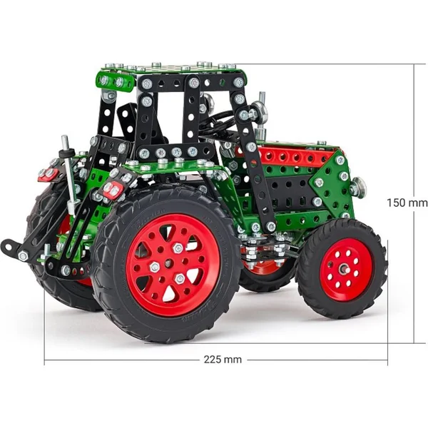 Plongez dans le monde de la créativité et du divertissement avec le kit Tracteur 4×4 de la société Merkúr. Cet ensemble unique est l’outil idéal pour développer les compétences techniques et l’imagination des enfants. Grâce aux pièces métalliques, les petits constructeurs peuvent assembler un tracteur vert 4 x 4. Le kit contient des pièces métalliques de haute qualité qui se fixent facilement avec des vis, ce qui favorise le développement de la motricité fine, de la pensée logique et de la concentration.