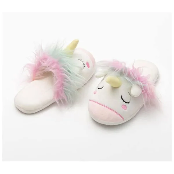 Pointure : 30-33. Une jolie paire de chaussons licorne en microfibre, avec des semelles anti-dérapantes. Ce produit n’est pas un jouet.