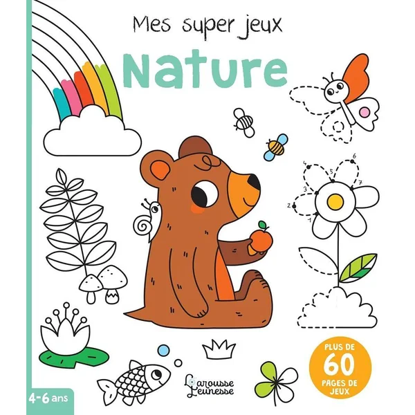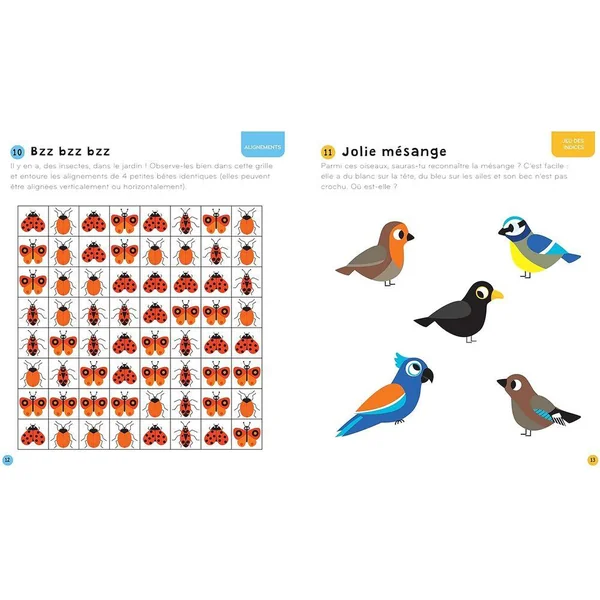 Des cherche et trouve, des labyrinthes, des coloriages, des jeux des différences…Plus de 60 jeux d’observation, sur le thème de la nature (les animaux et les plantes), pour retrouver toutes sortes d’éléments cachés et résoudre des mystères !