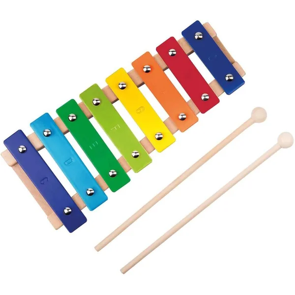 Pour petits musiciens, métallophone multicolore à 8 tons avec mailloche. Développe le rythme, la motricité et l’éveil musical des tout-petits.