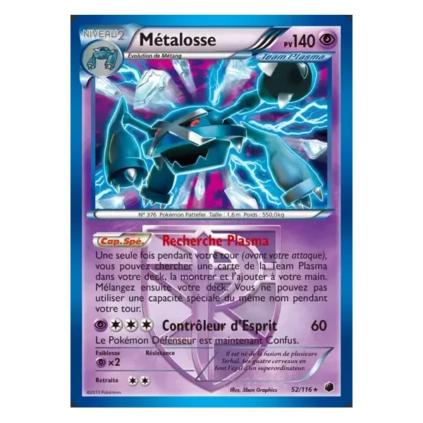 Découvrez Métalosse (plf052), une carte Pokémon de l’extension Glaciation Plasma, provenant du bloc Noir & Blanc. Idéale pour compléter votre collection, cette carte Holo Rare plaira autant aux collectionneurs qu’aux joueurs.