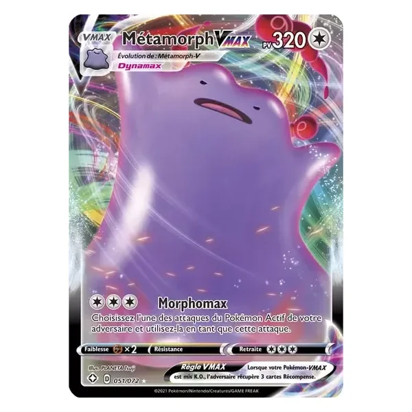 Découvrez Métamorph (shf051), une carte Pokémon de l’extension Destinées Radieuses, provenant du bloc Épée & Bouclier. Idéale pour compléter votre collection, cette carte Ultra Rare plaira autant aux collectionneurs qu’aux joueurs.