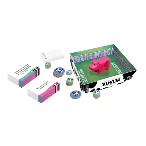 Meuhte est un jeu de société d’ambiance accessible dès l’âge de 10 ans pour des parties de 30 minutes environ avec de 4 à 20 joueurs. Il est édité par Big Potato Games.