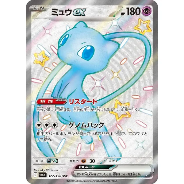 Découvrez Mew (sv4a327), une carte Pokémon de l’extension Shiny Treasure ex, provenant du bloc Scarlet & Violet. Idéale pour compléter votre collection, cette carte Shiny Ultra Rare plaira autant aux collectionneurs qu’aux joueurs.