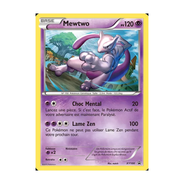 Découvrez Mewtwo (xypr100), une carte Pokémon de l’extension Promos XY, provenant du bloc XY. Idéale pour compléter votre collection, cette carte Promo plaira autant aux collectionneurs qu’aux joueurs.