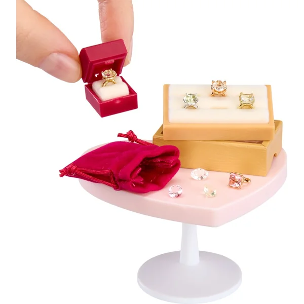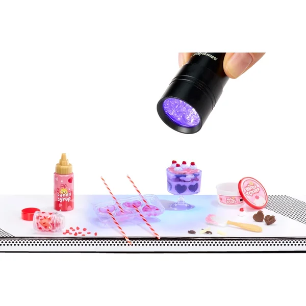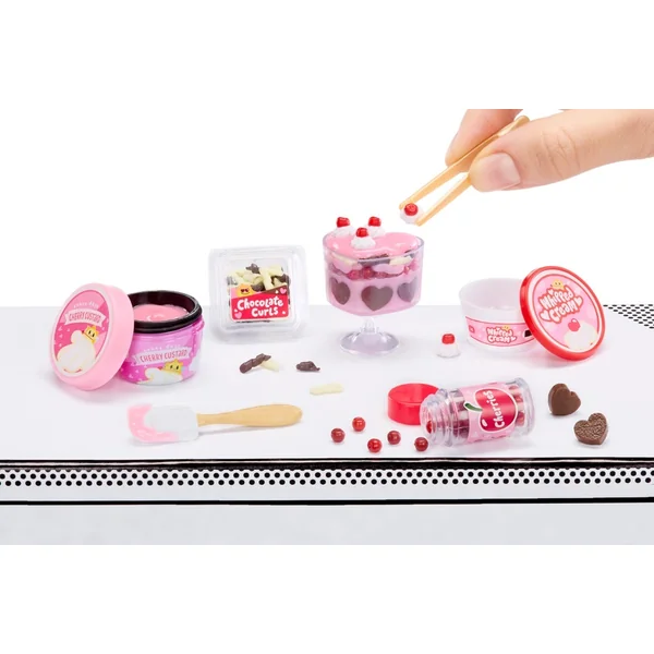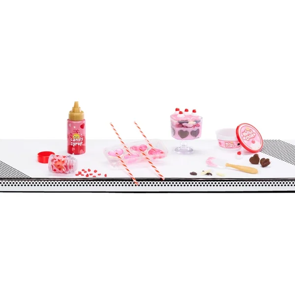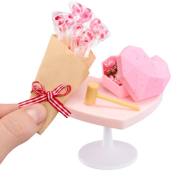 Mini jouets…GRANDES surprises ! Fais-le ! Sers-le ! Déballes des douceurs ou des bijoux en forme de mini répliques. C’est si miniature, mais malgré tout avec des détails incroyablement réalistes ! Tu prépares la nourriture ou la boisson avec les ingrédients de ton paquet, puis tu la laisses durcir au soleil direct pendant au moins 5 minutes et tu peux servir ! Dans cette série, tu trouveras des sucettes en forme de cœur, une surprise au cœur, un dessert au chocolat avec des cerises et une bague ultra rare.