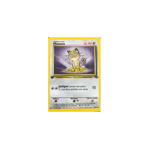 Découvrez Miaouss (ju056), une carte Pokémon de l’extension Jungle, provenant du bloc Wizards. Idéale pour compléter votre collection, cette carte Commune plaira autant aux collectionneurs qu’aux joueurs.