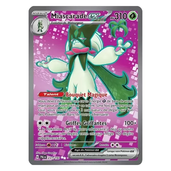 Découvrez Miascarade (pal231), une carte Pokémon de l’extension Évolutions à Paldéa, provenant du bloc Écarlate & Violet. Idéale pour compléter votre collection, cette carte Ultra Rare plaira autant aux collectionneurs qu’aux joueurs.