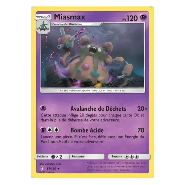 Découvrez Miasmax (gri051), une carte Pokémon de l’extension Gardiens Ascendants, provenant du bloc Soleil & Lune. Idéale pour compléter votre collection, cette carte Rare plaira autant aux collectionneurs qu’aux joueurs.