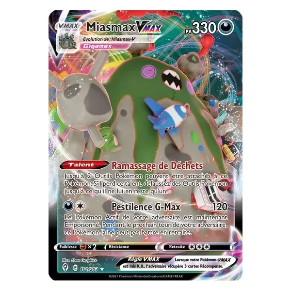Découvrez Miasmax (evs101), une carte Pokémon de l’extension Évolution Céleste, provenant du bloc Épée & Bouclier. Idéale pour compléter votre collection, cette carte Ultra Rare plaira autant aux collectionneurs qu’aux joueurs.
