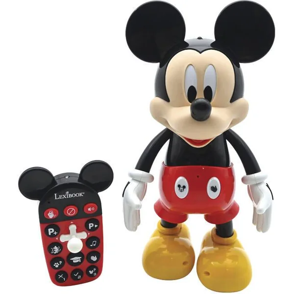 Amuse-toi des heures avec un robot bilingue Mickey super divertissant ! Contrôle ton Mickey dans toutes les directions avec le joystick de la télécommande ou avec ta main et le contrôle gestuel. Bras articulés. Museau effet « peau ». Mickey danse : il joue même de la musique en même temps ! Effets lumineux magiques : les boutons de son short s’allument ! Magique ! Pense à un animal. Mickey devinera lequel il s’agit ! Plus de 100 quiz sur les mathématiques, les métiers, les formes, les instruments de musiques, les bruits d’animaux et les lieux. Bilingue Français et Anglais ! 5 piles LR03 non fournies. Notice d’utilisation incluse.
