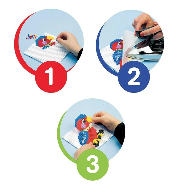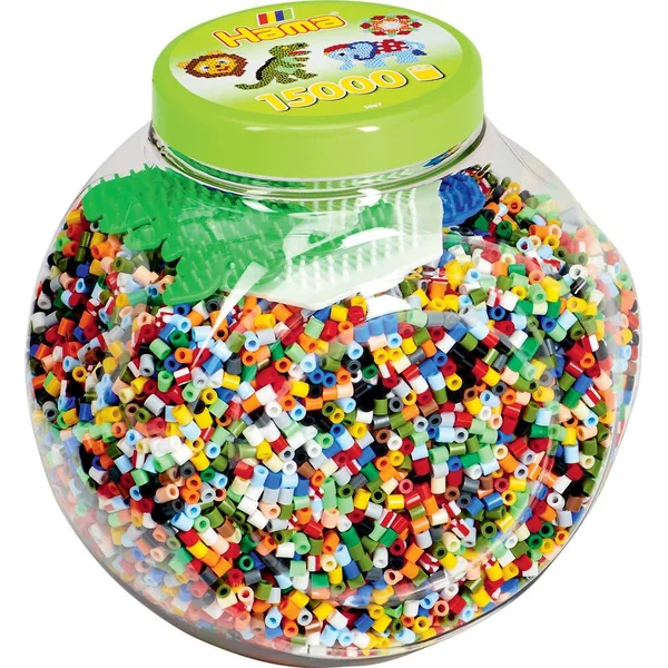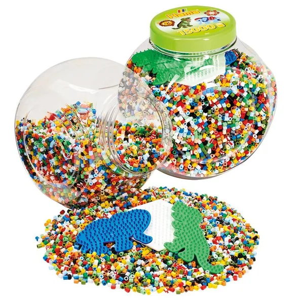 Retrouve dans ce pot de plus de 15 000 perles HAMA Midi et 3 plaques (un petit hexagonale, un petit éléphant et une dinosaure). Un florilège de couleurs ! Pour jouer, rien de plus simple : Poser les perles sur la plaque. Couvrir le motif avec le papier à repasser puis repasser au fer très chaud sans vapeur. Le repassage est laissé aux soins des adultes. Enlever le motif obtenu de la plaque de base qui est réutilisable. Les jeux Hama sont pensés pour le développement intellectuel et moteur des enfants. Au cours des premières années de vie, les petits apprennent à reconnaître les couleurs, à saisir les objets, à distinguer les formes, à avoir une première idée des quantités, etc. C’est en relation avec ces années d’apprentissage que les produits Hama montrent leur force en tant que jouets pédagogiques. Guidés par leurs parents, les enfants s’amuseront à prendre confiance en eux. Des activités qui développent le partage, la dextérité et qui stimulent la curiosité !