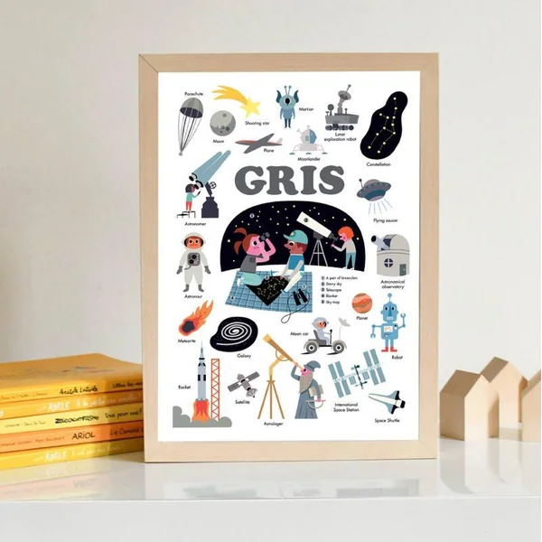 1 Affichette au format A4 à composer avec des stickers repositionnables. Sur le thème de l’espace.