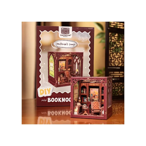 Le Gentleman’s Lounge Mini Book Nook apporte une ambiance classique directement dans votre bibliothèque. Avec ses détails en bois raffinés, son fauteuil confortable, ses étagères à livres et son bureau nostalgique, ce kit DIY vous transporte dans l’univers des bibliothèques victoriennes. Parfait pour les passionnés de lecture, les amateurs de décoration et les fans de bricolage.