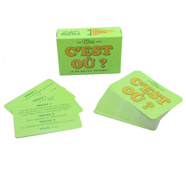 Chaque carte comporte 3 indices sur une ville, moins tu auras besoin d’indices pour trouver plus tu marqueras de points !