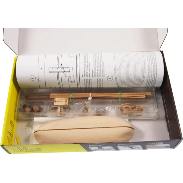 Ce sont des kits pour les débutants en modélisme naval, qui sont souvent équipés de pièces de coque prêtes à l’emploi et d’un minimum de composants. Bien qu’il s’agisse d’un modèle pour débutants, il est nécessaire de garder à l’esprit qu’une certaine habileté manuelle du constructeur et la capacité à résoudre des problèmes de construction sont supposées. Le manuel indique le processus de construction, mais ne peut pas couvrir la technologie de traitement des matériaux, les méthodes de collage, de peinture, de ponçage ou de vernissage. Ce sont des procédures classiques de modélisme que chacun effectue selon ses possibilités et ses habitudes.
